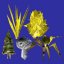 Grass, leaf, 2 plants and a tree. |